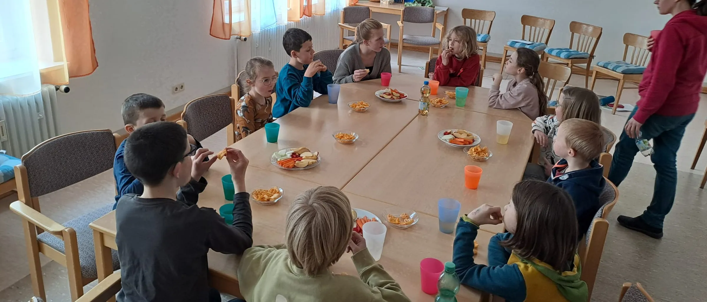 Ein wichtiger Bestandteil der Kinderkirche Heberbörde sind Rituale wie die Begrüßung, kurze Berichte zum Befinden aller, ein gemeinsames Thema, ein gemeinsamer Snack sowie das Singen und Beten. So wird das Lernen zum Erlebnis.
