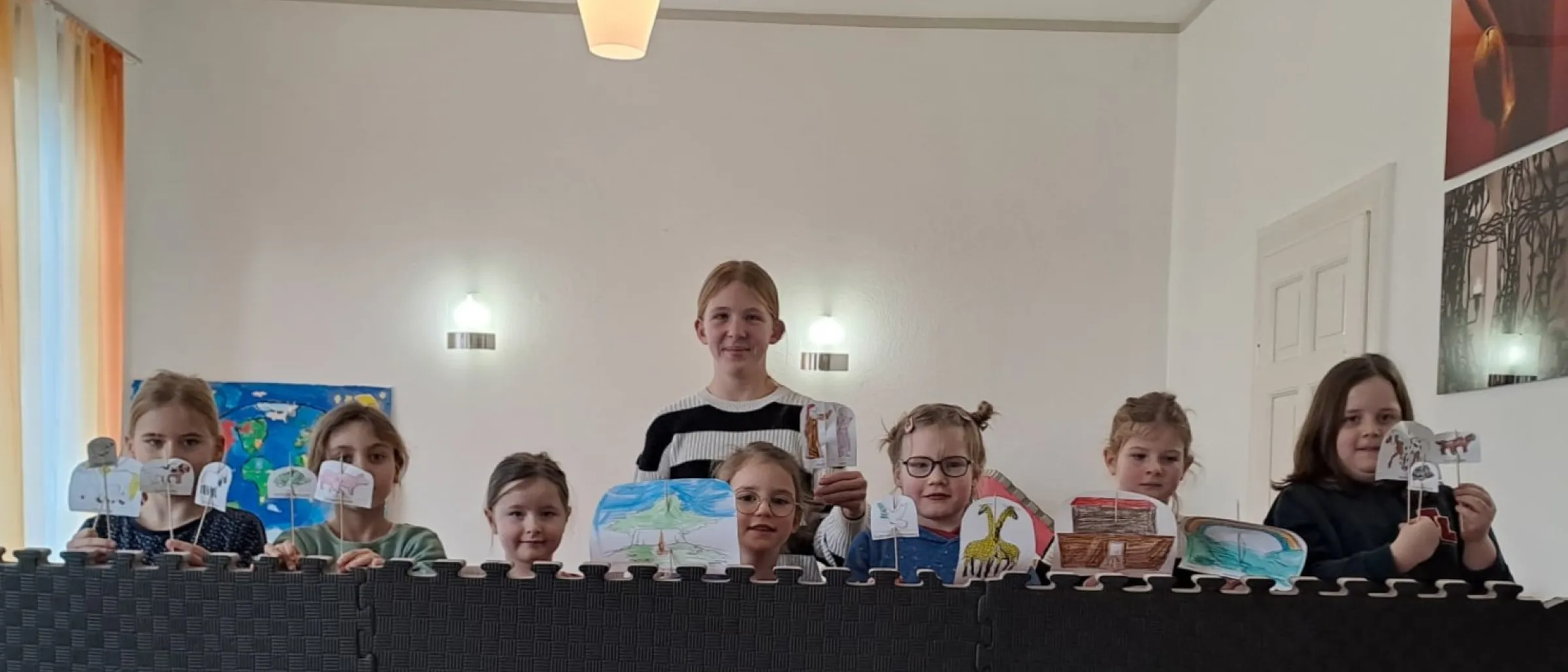 Los ging es im Januar mit Noah und seiner Arche. Die bekannte Geschichte aus Gen 6 wurde zunächst vorgelesen und besprochen, bevor die Kinder sie mit Figuren nachspielten. Eine Gruppe arbeitete mit Holzfiguren und -tieren sowie einer Arche, die andere Gruppe bastelte Menschen, Tiere und das Schiff aus Papier. Nach dem Überlegen, Besprechen und Üben präsentierte jede Gruppe ihr eigenes kleines Theaterstück, wofür es viel Applaus gab.