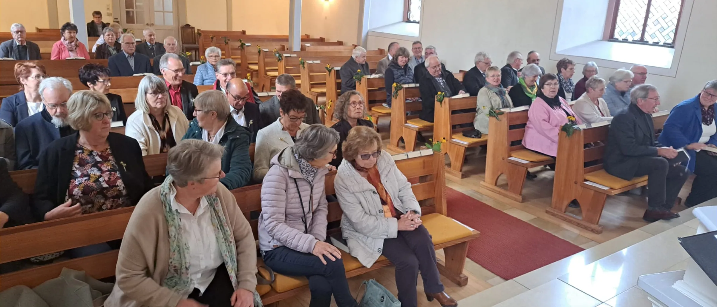 Unter dem Motto „Wiedersehen – Erinnern – Danken – Loben – Segen empfangen" begann das Wochenende am Samstagnachmittag mit einem Kaffeetrinken im Pfarrhaus Gremsheim. Viele der Jubilare reisten aus der Region an, einige kamen von weiter her. Am Abend gestaltete Lektorin Sabine Hoffmann eine musikalische Andacht in der Kirche in Gremsheim, die auf das Fest am Sonntag einstimmte.